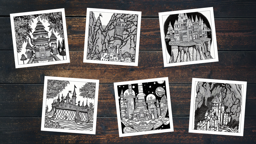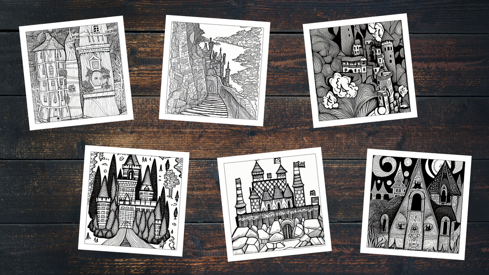Step into a world of fantasy and wonder with our "Surreal Castles" adult coloring pages. This unique, highly-detailed coloring download features an incredible 184 castle scenes, each one meticulously designed to ignite your creativity and whisk you away on a magical coloring journey.