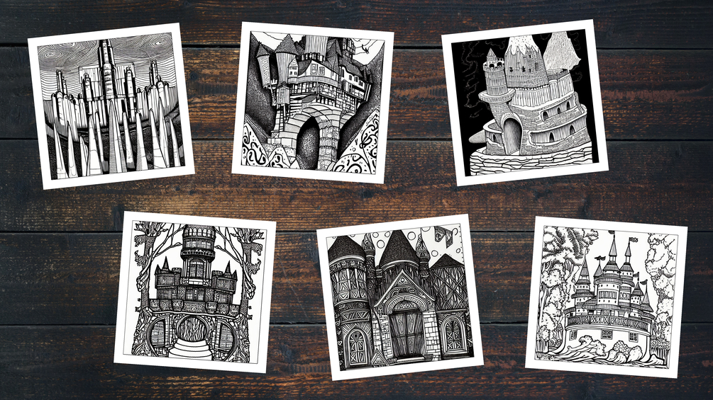 PDF of 184 unique, intricately-detailed surreal castle scenes
